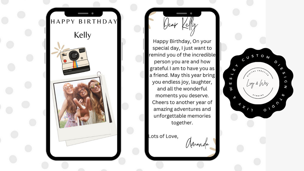 This modern digital birthday card is fully customizable with your own photos and message โ all editable in FREE Canva (no subscription needed)!